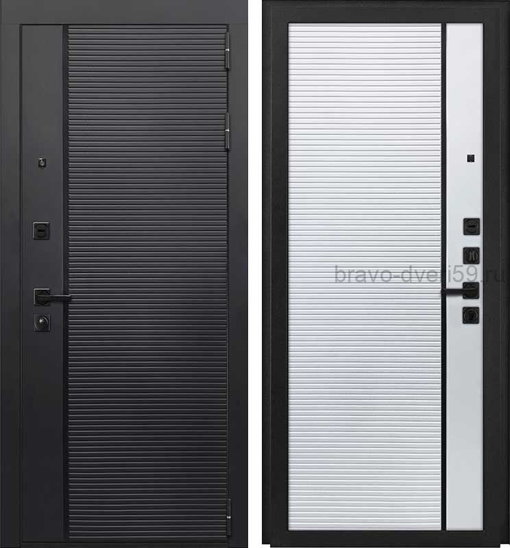 Румо PRO Ясень черный, Ясень белый металлическая трехконтурная входная дверь