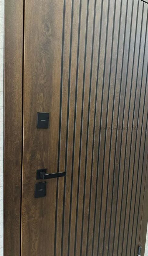 Внешняя накладка: Фрезерованная МДФ-панель 10 мм. Пленка Винорит, цвет грецкий орех с патиной