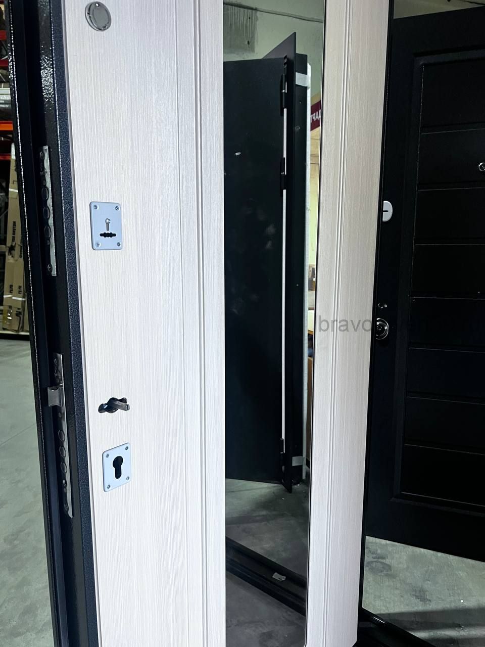 Входная дверь Престиж Нэо Зеркало — стильная и надёжная модель, которая сочетает современный дизайн, долговечность и удобство. Это идеальное решение для квартиры или частного дома. Отделка выполнена в цвете антик серебро снаружи и беленый дуб с зеркалом внутри, что придаёт интерьеру свет и элегантность.