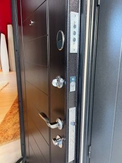 Дверь сохранит правильную геометрию и безотказность работы на протяжении всего срока службы, резиновый уплотнитель по контуру полотна − аналог автомобильного, обеспечит высокую герметичность, наличие уникального запатентованного металлического эксцентрика позволит регулировать притвор двери на летнее и зимнее время, задвижка "ночной сторож" дополнит защиту выполня функцию третьего замка.