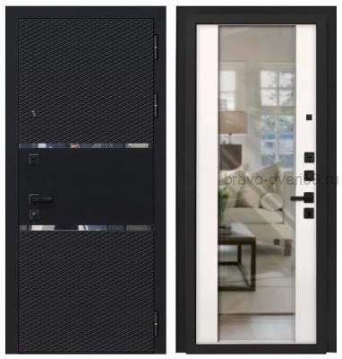 Конте Черный кварц/Зеркало металлическая трехконтурная входная дверь