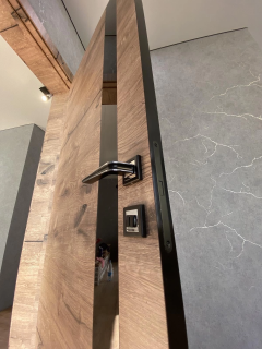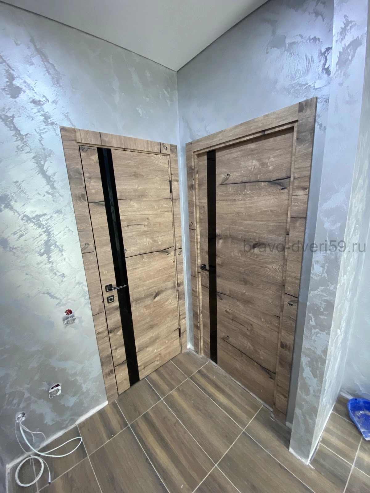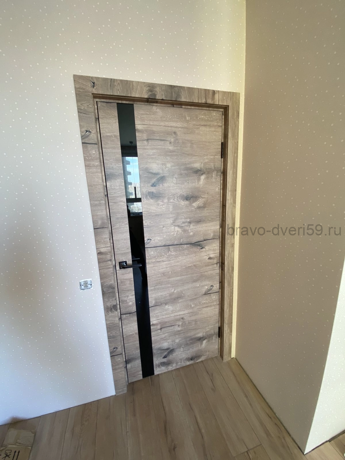 Двери изготавливаются в текстурной пленке с 3D-эффектом с черной кромкой ABS, черное стекло.