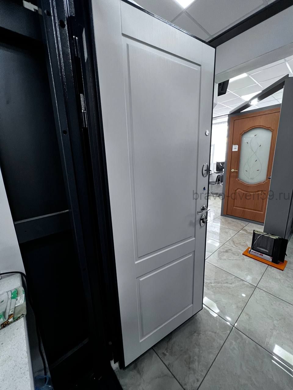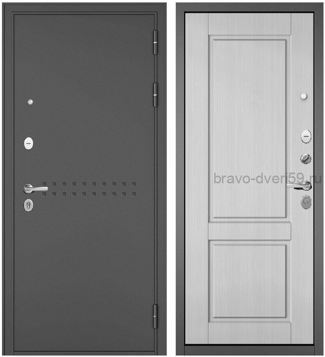 Модель TRUST MASS MP Графит букле R-4 / Ларче белый 9SD-1 представляет собой премиальную входную металлическую дверь с высокой степенью защиты, тепло- и шумоизоляции, а также стильной декоративной отделкой.