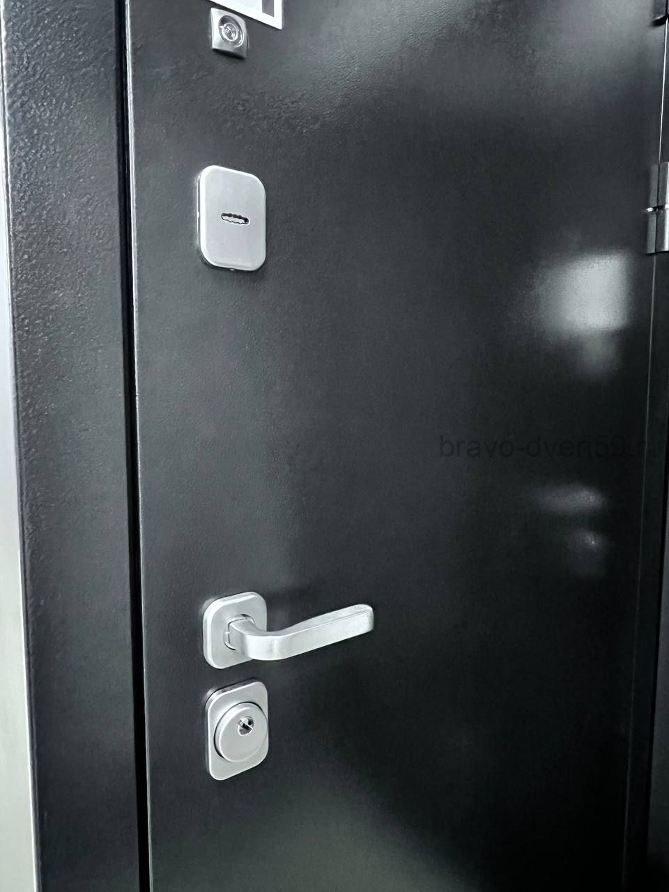 Замки и безопасность: два разносистемных замка — цилиндровый и сувальдный (класс взломостойкости IV), противосъёмные ригели, ночная задвижка, эксцентрик для регулировки прижима.