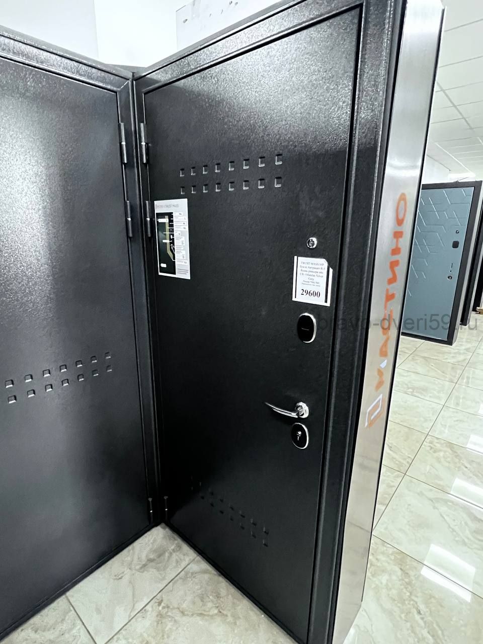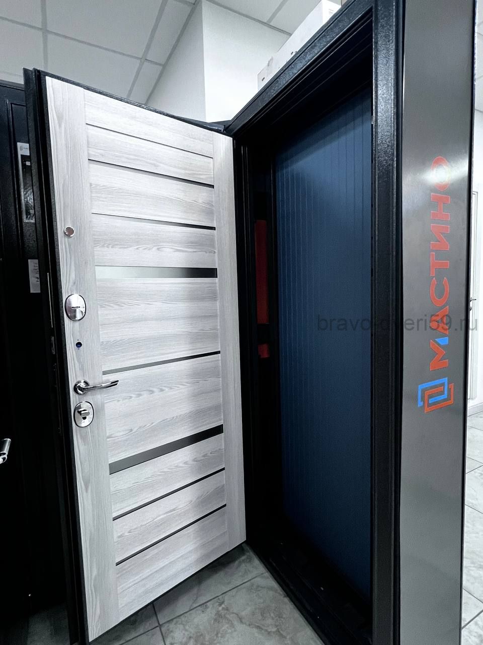Входные двери Мастино - серия Trust Mass 90 Новинка года - серия входных дверей Mass 90. Модели данной серии отличаются высокими показателями тепло и шумоизоляции за счет большой толщины дверного полотна, тройного контура резиновых уплотнителей и внутренней отделки, выполненной из декоративной МДФ толщиной 16 мм с различными вариантами фрезеровки. Два замка 2 и 3 класса защиты. Дверное полотно толщиной 90 мм. Утепление полотна - базальтовая плита плотностью 110 кг/м3. Три контура уплотнителей. Три петли. Внутренняя отделка из МДФ 16 мм. Внешняя отделка из МДФ 10 мм (опция). Несмотря на высокие характеристики большинства эксплуатационных показателей, свойственных дорогому сегменту входных дверей, данная серия имеет вполне демократичную приемлемую цену.
