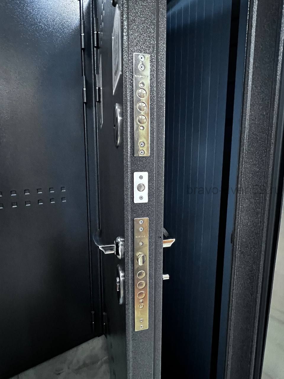 Новинка 2025 года - серия входных дверей Mass 90. Модели данной серии отличаются высокими показателями тепло и шумоизоляции за счет большой толщины дверного полотна, тройного контура резиновых уплотнителей и внутренней отделки, выполненной из декоративной МДФ толщиной 16 мм с различными вариантами фрезеровки.