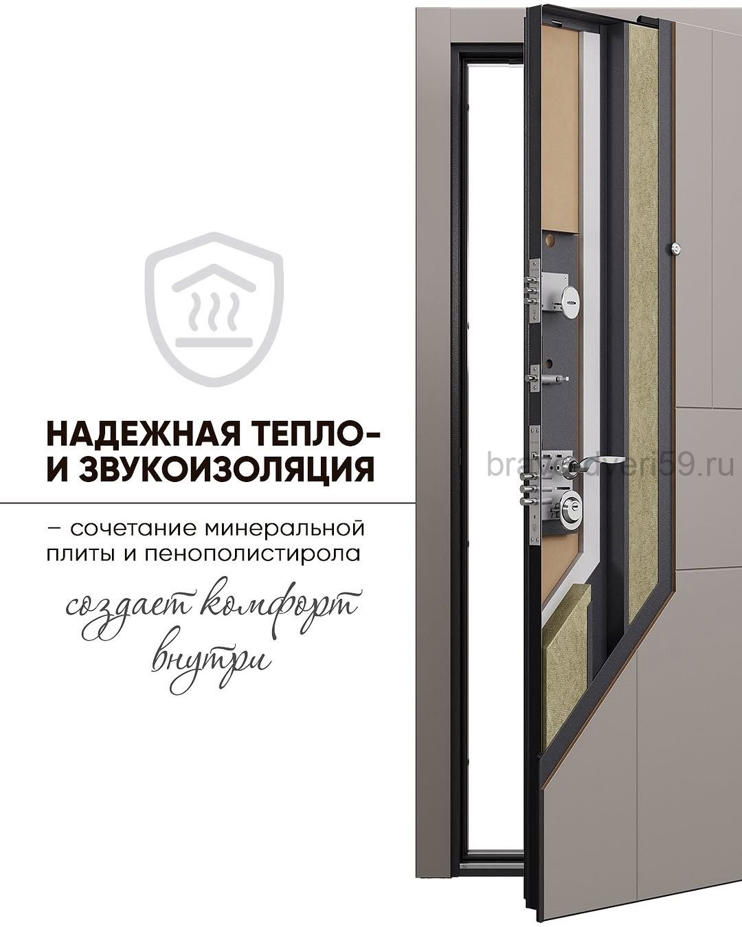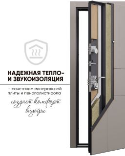 Заполнение полотна — минеральная плита высокой плотности и пенополистирол, два контура уплотнителей, эксцентрик для регулировки притвора.