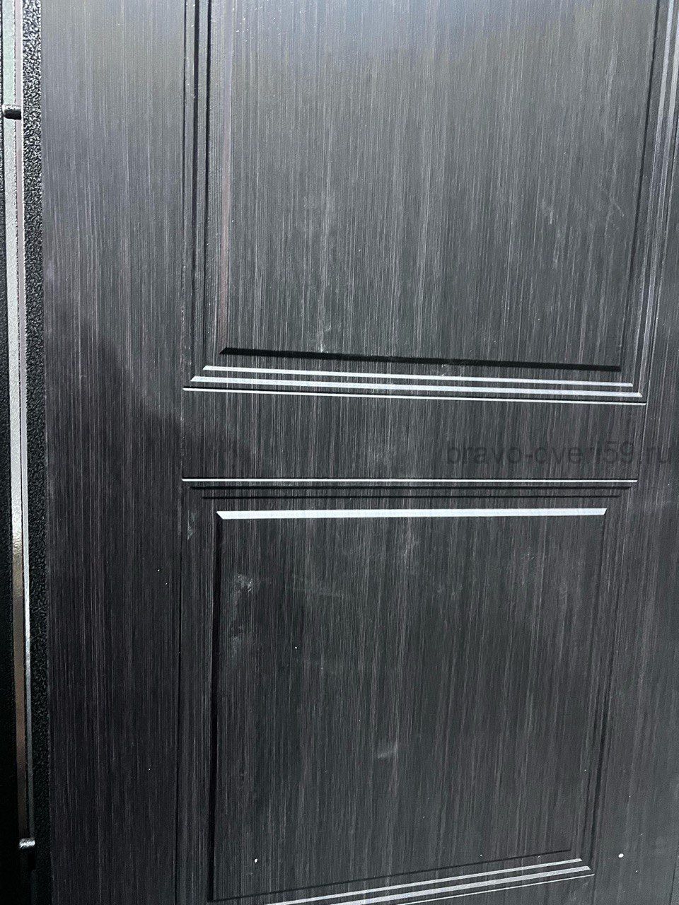 Снаружи дверь покрыта атмосферостойким порошково-полимерным слоем цвета Антик серебро, который защищает от влаги, солнца и механических повреждений.