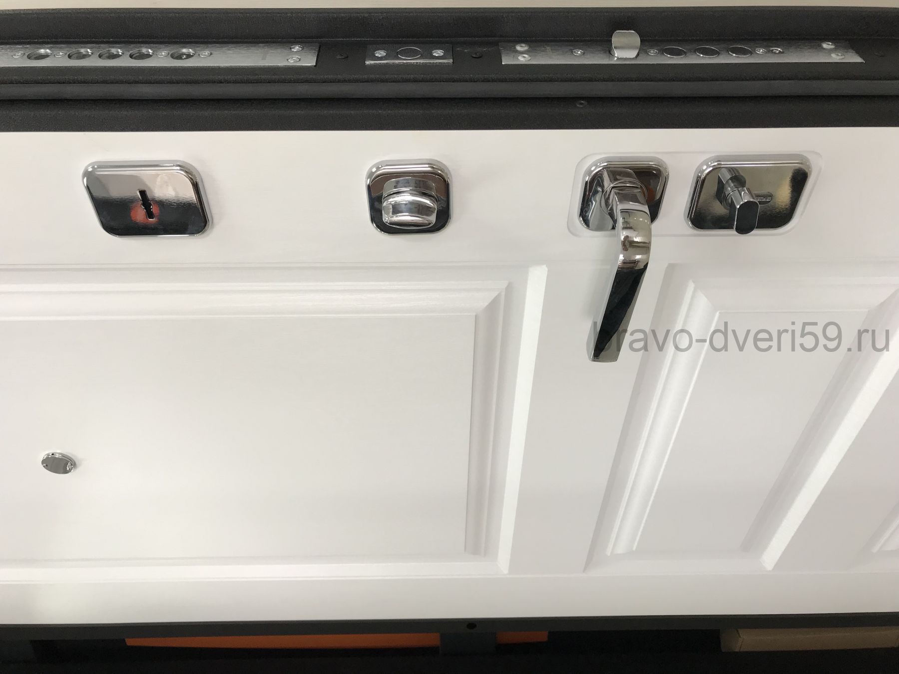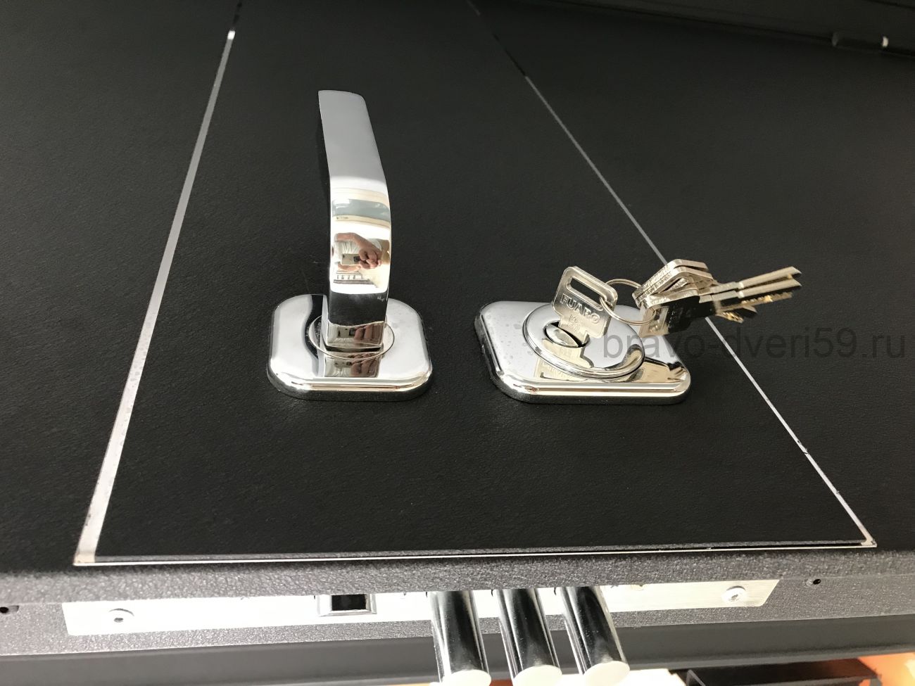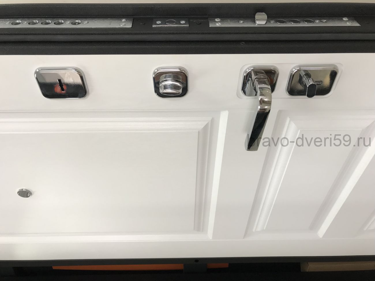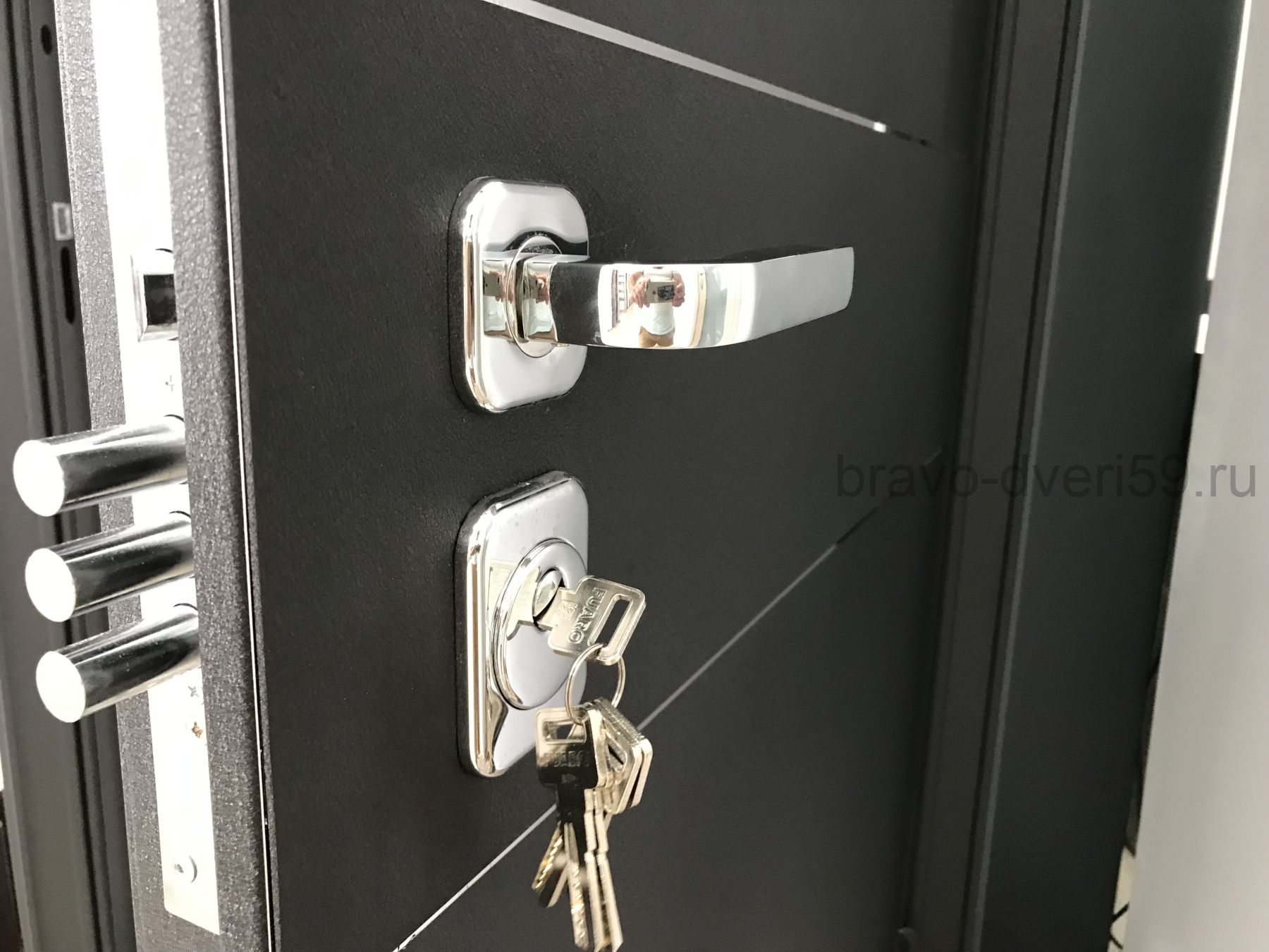 Модели серии Premium 90 отличаются в первую очередь своим уникальным дизайном. На металлическую поверхность дверей нанесено порошково-полимерное покрытие цвета "чёрный шёлк". На пороге имеется наладка из нержавеющей стали. Дверь оснащается двумя замками высшего 4 класса взломостойкости.