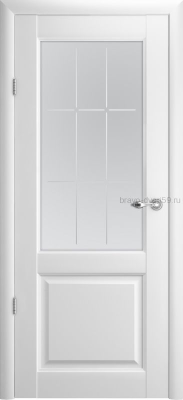 Элегантность и в то же время простоту содержит модель "Эрмитаж-4 в цвете Белый винил от фабрики Альберо. Вертикальные багетные вставки из МДФ в глухой двери и из матового стекла с рисунком в остекленной делают вашу квартиру более светлой и просторной.