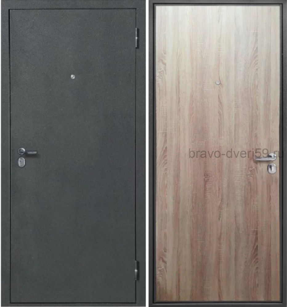 Входная металлическая дверь «Прораб Плюс» 4,5 см — Серебро / Дуб Сонома