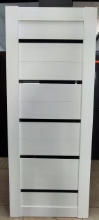 "Техно 22" Межкомнатная дверь экошпон Бьянко с черным стеклом