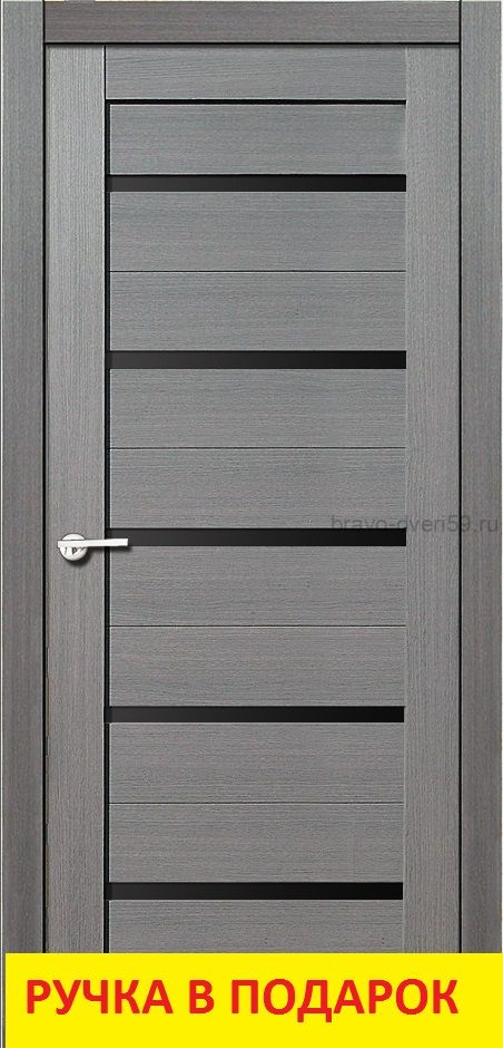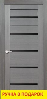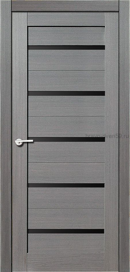 Межкомнатная дверь Техно 22 дуб серый, черное стекло с отделкой Эко Шпоном. Бескромочная технология производства, профиль без пустот. Эко Шпон - структурный антивандальный материал (Германия).