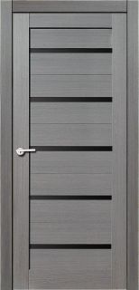 "Техно 22" дуб серый, черное стекло Межкомнатная дверь экошпон со стеклом