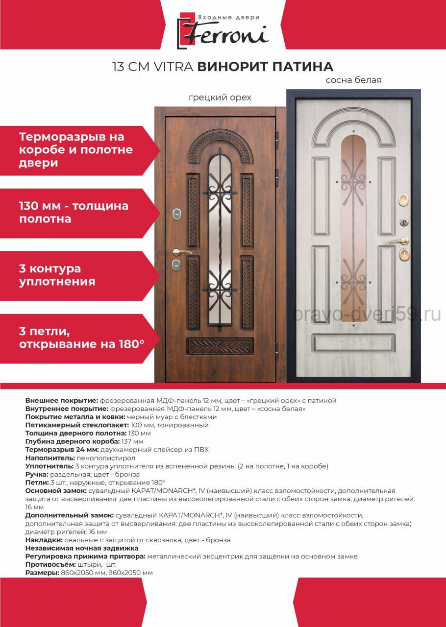 VITRA Винорит Патина 13 см морозостойкая дверь c ТЕРМОРАЗРЫВОМ